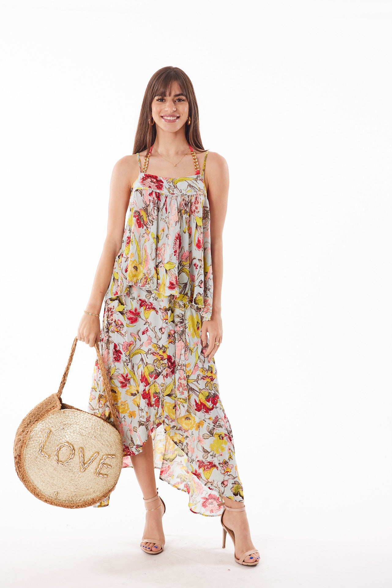 Jute hand woven, embellished with shells